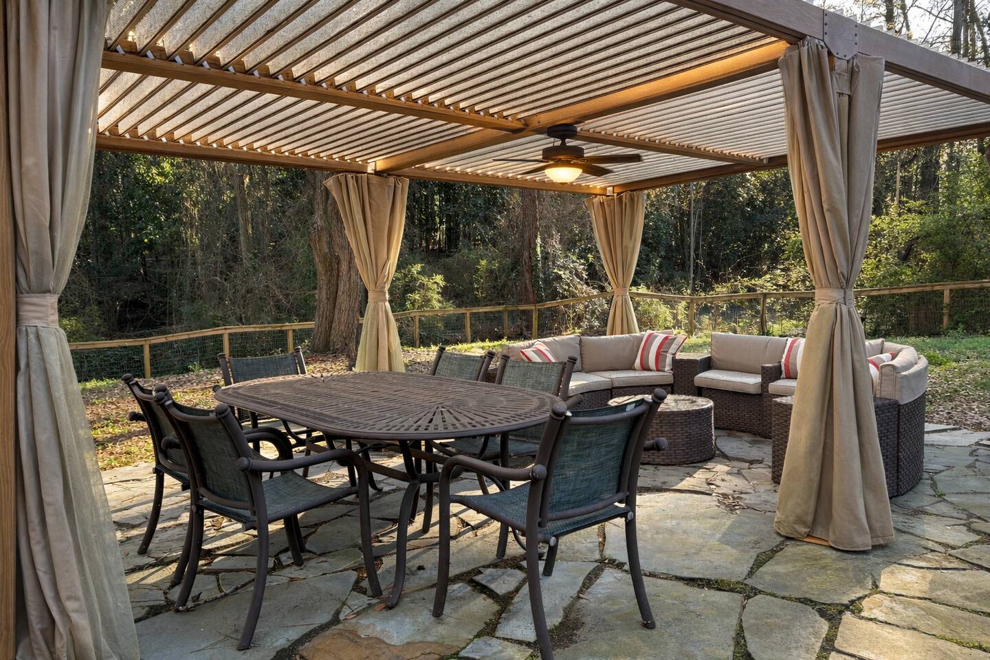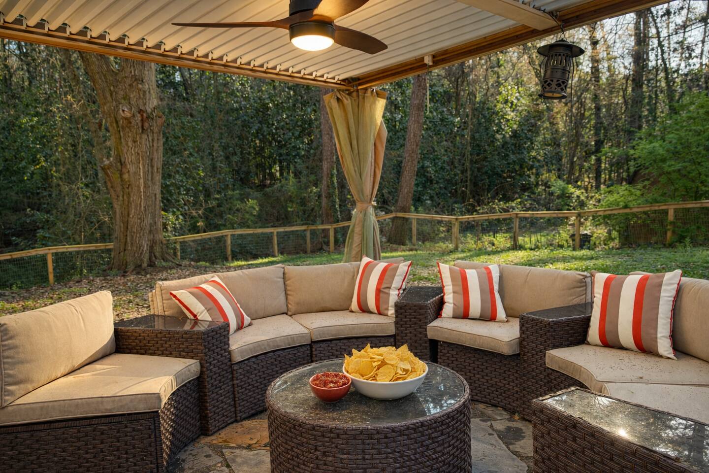 **HIGHLIGHTS** - PLEASE BE AWARE THAT MYSELF, MY HUSBAND, AND OUR INFANT LIVE UPSTAIRS - EXPLORE NEARBY - Walk (~1mi) → downtown Stone Mountain: locally owned brewery, book store, coffee shop, restaurants, and more - Walk (1 block) → McCurdy Park with: an outdoor gym, playground, swings, picnic tables, baseball fields, & a walking trail - 1.5mi → Stone Mountain Park with hiking, lake access, and numerous events **(FREE parking pass included, $20 per day savings!)** - Located within the quiet, historic district of Stone Mountain Village - 30 mins to Downtown Atlanta → Georgia Aquarium, Ferris wheel, World of Coke, National Center for Civil & Human Rights, etc. - 30 mins → ATL International airport WELCOMING ENTRY - Level 2 EV charger - Detailed, step by step check-in directions - Designated, off-street parking for 2 cars - Lighted parking and pathway with covered entry - Smart locks for convenient & secure access - Custom guidebook with local recommendations SPACIOUS ENSUITES PRIMARY BEDROOM 1 - Canopy-style king bed with memory foam mattress - Side tables and lamps with USB ports - 55” smart TV - Walk-in closet - Remote controlled mini-split and ceiling fan - PRIMARY BATHROOM 1: soaker tub, shower panel with extendable wand, double-sink vanity, and separate water closet PRIMARY BEDROOM 2 - King bed with hybrid mattress - Side tables and lamps with USB ports and outlets - 55” Smart TV - Remote controlled mini-split and ceiling fan - Dedicated office desk with: color printer, rolling office chair, and Windows laptop - PRIMARY BATHROOM 2: walk-in shower with shower panel and extendable wand ENTERTAINING LIVING SPACES GAME ROOM - Twin daybed and a twin trundle bed - Custom bar-height table with seating for 2 - 32" Smart TV - Retro game console with 2 wireless controllers, includes 20,000+ built-in games - Take-One-Leave-One wall library - Giant Checkers, chess, and tic-tac-toe - Board and card games LIVING ROOM - Leather sectional - 60” Smart TV - Nintendo Wii game console with: 4 controllers, 4 nunchucks, Super Mario Bros, Jenny Craig workout, & WiiPlay STOCKED KITCHEN/DINING/LAUNDRY - Cooking and dining essentials - Stainless steel appliances, including: a flat-top range, dishwasher, refrigerator with ice maker, microwave, air fryer, toaster, and toaster oven - Butler's pantry with a coffee bar, featuring a dual K-cup and drip coffee maker - Dining table with seating for 4 - Kids dining table & 2 small chairs - KUB highchair with baby, toddler, and child configurations - Full sized washer and gas dryer IDEAL FOR TRAVELING PROFESSIONALS - Office space inside of Master Bedroom 2: desk, rolling office chair, color printer and Windows laptop - Highspeed WiFi - Iron & ironing board BRING THE WHOLE FAMILY - Pack-and-Play travel crib with: tummy time mat, changing pad, large bassinet, and removable rocking-bassinet - Guava mini pack-and-play with carrying case, ideal for taking to Stone Mountain Park - KUB highchair with baby, toddler, and child configurations - Bumbo baby booster seat - Room darkening window treatments - Baby safety gate - Bathroom step stool - Baby bathtub with newborn insert - Kid-friendly toys and books - “Riding horse” bouncer on springs - Kid-friendly flatware, silverware, and drinkware - Kid-sized dining table with 2 small chairs - Bath tub with extendable shower wand - 2 Twin beds - Smart TVs in all bedrooms, game room, and living room - Retro game console with 2 wireless controllers, includes 20,000+ built-in games - Nintendo Wii game console with: 4 controllers, 4 nunchucks, Super Mario Bros, Jenny Craig workout, & WiiPlay - Take-One-Leave-One library wall - Giant checkers, chess, and tic-tac-toe - Fully-fenced yard and large patio - Located within the quiet, historic district of Stone Mountain Village - City park (McCurdy Park) is 1 block away with: a playground, picnic tables, slides, swings, baseball fields, and a walking trail - 5 Min drive to Stone Mountain Amusement Park **(FREE parking pass included, $20 per day savings!)** PETS LOVE IT TOO - Fully-fenced yard - Dedicated pet blankets and towels - 2 Large, waterproof sofa covers - Pet amenities: enzymatic cleaning spray, poop bags, leash, food/water bowls, and dog shampoo SOAK IN THE OUTDOORS - 12x20 patio with XL Pergola, which can be opened or closed, in case of rain - Outdoor sectional seating for 6 - Dining table for 6 - Bar height table for 4 with umbrella ACCESSIBILITY - No interior stairs (exterior stairs required) - All tile floors - Walk-in shower with handheld wand - Lighted entryway ADDED FOR COMFORT - Remote controlled mini-split AC/heat units and ceiling fans with remotes for customized temperatures - Instant-hot, tankless water heater - Numerous amenities for pets and kids, make travel easy - Stone Mountain Park parking pass - Linens, plus extra pillows & blankets - Single-story apartment with no interior stairs required* (steps required from the exterior) - ChargePoint Level 2 EV charger (FREE) - Designated, off-street parking A Meta-CapitalLLC Superhost listing, so you can be confident in an enjoyable stay.