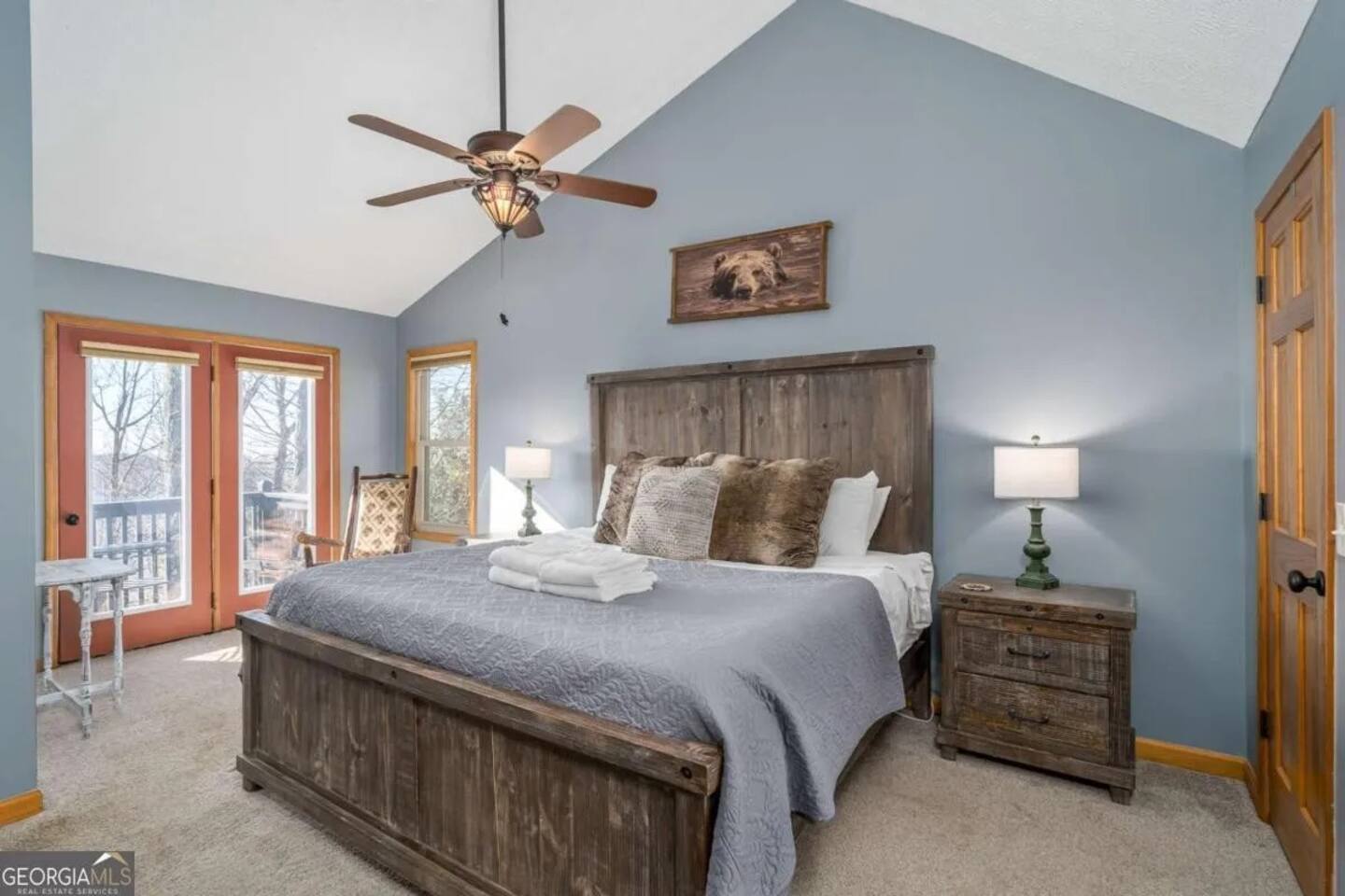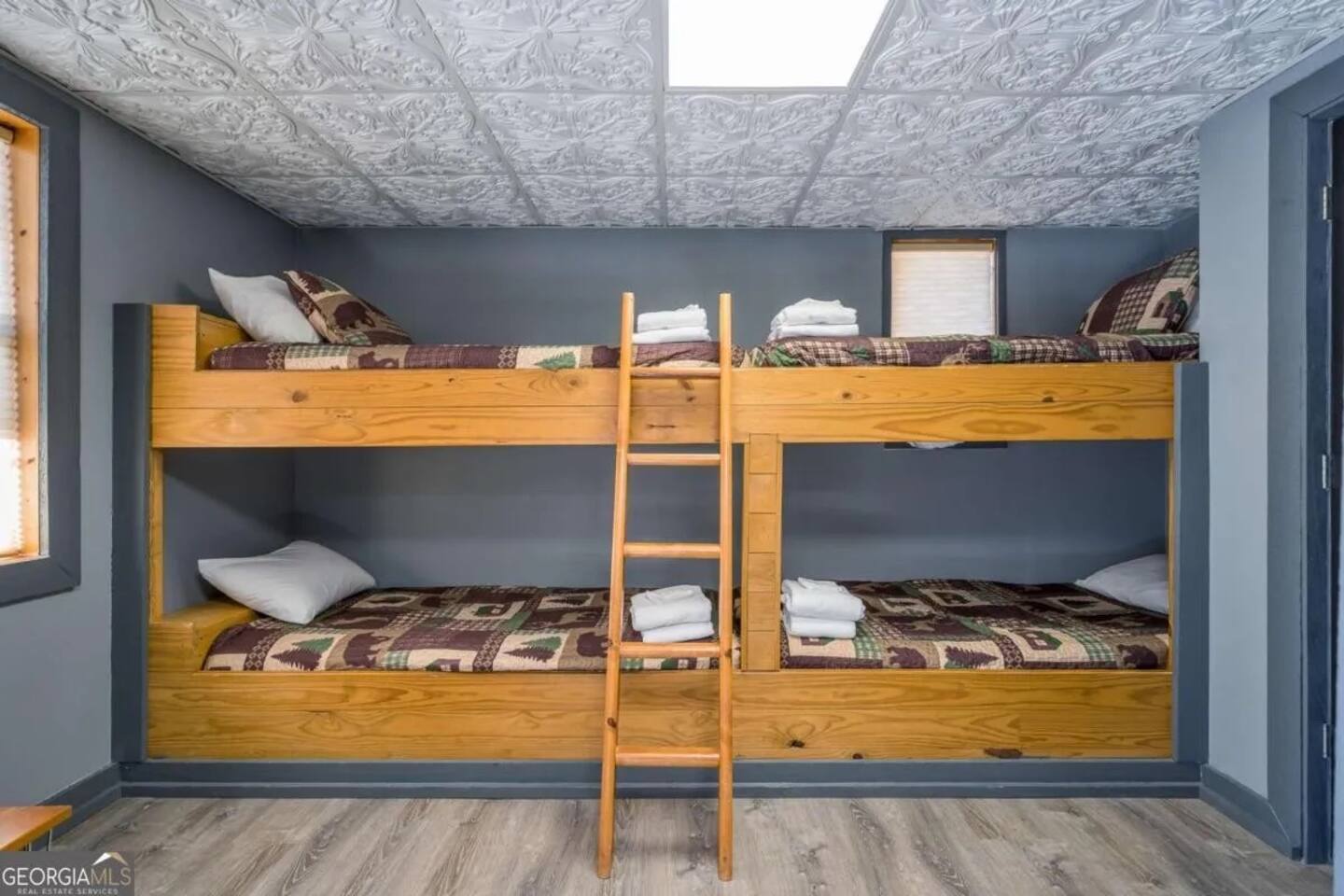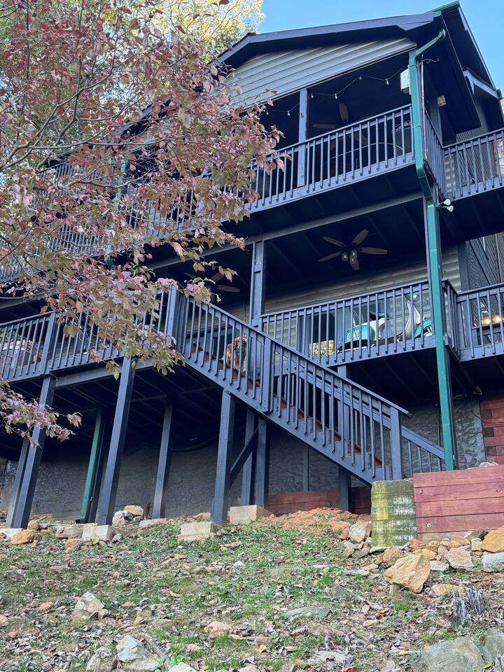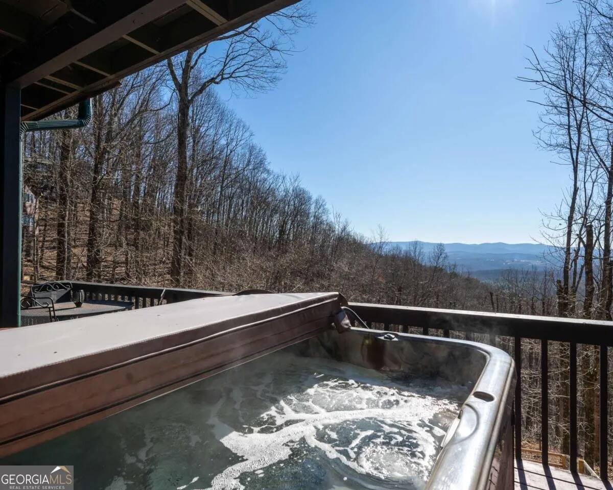 **HIGHLIGHTS** EXPLORE NEARBY - All paved roads to access the cabin, including a paved driveway - Located in a gated community with resort amenities: Olympic sized swimming pool, tennis courts, basketball court, kids playground, waterfall, hiking trails, lakes (fishing-friendly!) and a fully-fenced dog park! - 15 mins → downtown Ellijay - 14 mins → downtown East Ellijay - 26 mins → downtown Blue Ridge WELCOMING ENTRY - Detailed, step by step check-in directions - Parking for 5 cars - Smart lock for convenient & secure access - Covered and well-lit front porch: 3 rocking chairs and ceiling fan - Custom guidebook with local recommendations ENSUITE TOP LEVEL - Primary bedroom suite 1: King sized bed, 45" smart TV, ceiling fan, attached full bathroom, & double patio doors onto a private balcony with seating - Primary bathroom ensuite 1 with walk-in shower with shower wand - Lofted office space with: a computer desk, desktop monitor, keyboard, ergonomic chair, and rocking chair OPEN CONCEPT MAIN LEVEL - Primary bedroom suite 2: King sized bed, 45" smart TV, ceiling fan, attached full bathroom *ideal for those wanting to limit stair usage - Primary bathroom ensuite 2 with tub/shower combo with shower wand - Living room: 55" Smart TV, leather couches, & gas fireplace - Dining room with table for 6 - Eat-in Kitchen with cooking and dining essentials, including a dishwasher, ice-maker, gas stove, & dining peninsula with seating for 4 - Full sized laundry - Main deck and fully-fenced yard access (with outdoor living and dining) ENTERTAINING LOWER LEVEL - Bedroom 3: Double bunk beds with 4 twin beds - Bathroom 3 with walk-in shower and shower wand - Second living room: 65" smart TV and XXXX games - Game room with Foosball and billiards/pool table - Lower deck and fully-fenced yard access (with outdoor living and dining) SOAK IN THE OUTDOORS - Primary Bedroom Ensuite Deck: Private balcony with seating - Main level deck: Gas grill, outdoor sofa, 2 Adirondack chairs, & a dining table with seating for 4 (extra chairs available), with access to fully-fenced backyard - Lower deck: Hot tub, dining table with seating for 4 (extra chairs available), & custom Vespa table, with access to fully-fenced backyard - Shrouded in trees, providing privacy and beautiful surroundings - Neighborhood natural features: 4 lakes, ponds, hiking trails, and waterfall access BRING THE FAMILY - Resort amenities: Olympic sized pool, tennis courts, hiking trails, lakes, fishing, basketball court, playground, and a fully-fenced dog park! - Main floor bedroom & attached bathroom - Waterproof mattress and pillow covers on in all bedrooms - Blackout window treatments - Bathtub - Plastic dinnerware, silverware, & cups - Fully fenced yard - Full sized laundry - Leather sofas - 2 Living rooms - Streaming channels provided: Tubi, Roku Channel, Pluto, PBS - Game room: Foosball & billiards/pool table - Pet-friendly - Fully-fenced decks and yard RESORT NEIGHBORHOOD AMENITIES - Private, gated community - Olympic-sized swimming pool - Tennis courts - Basketball court - 4 Lakes (fishing permitted) and small creeks - Hiking trails, one leads to a waterfall - Kids playground - Fully-fenced dog park ADDED FOR COMFORT - Smart home features: smart locks, electronics, and high-speed WiFi - Extra pillows and linens - A Meta-CapitalLLC listing: Superhosts, so you can be confident in a pleasant experience STR License: 004232