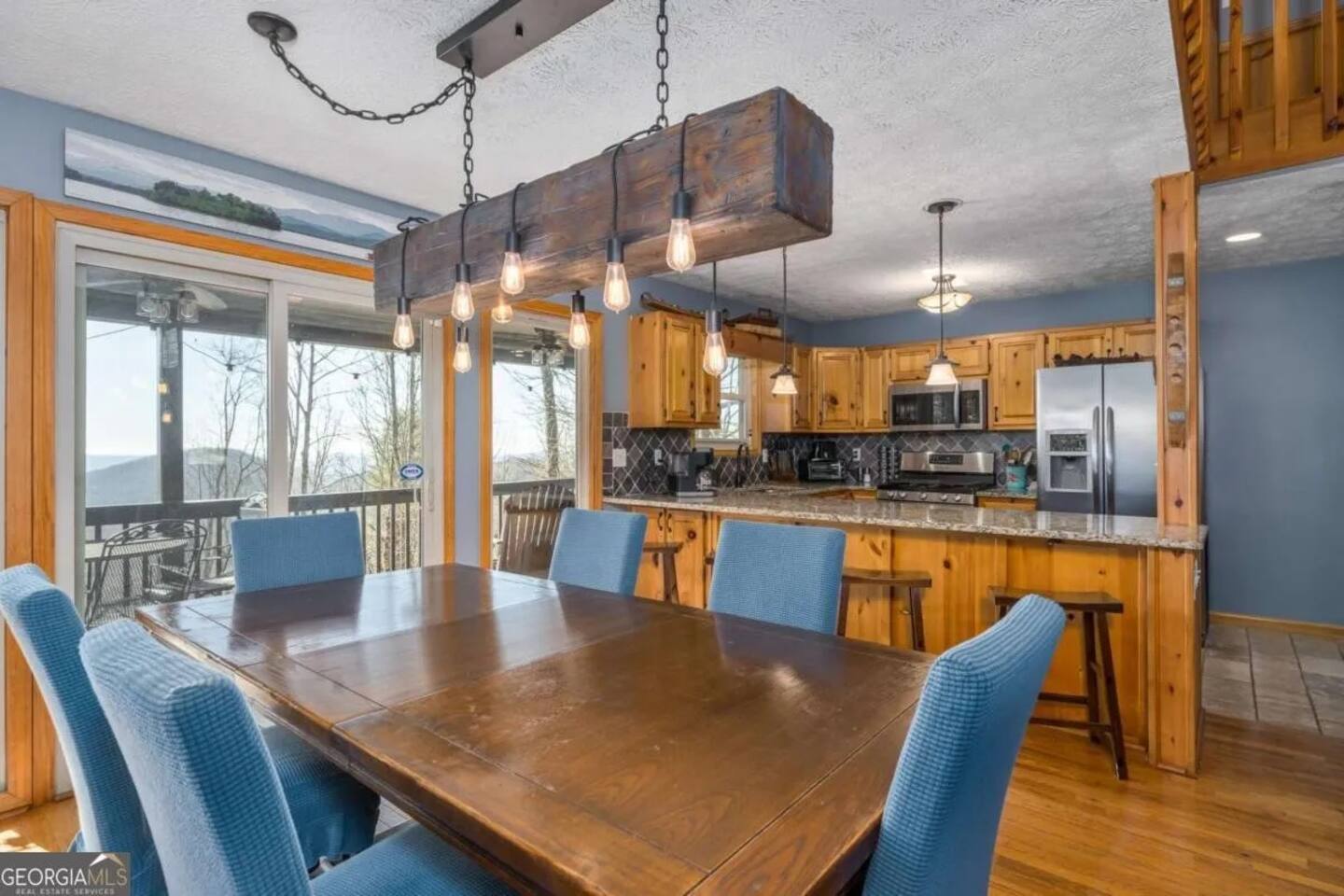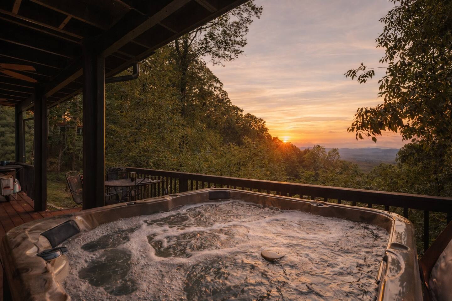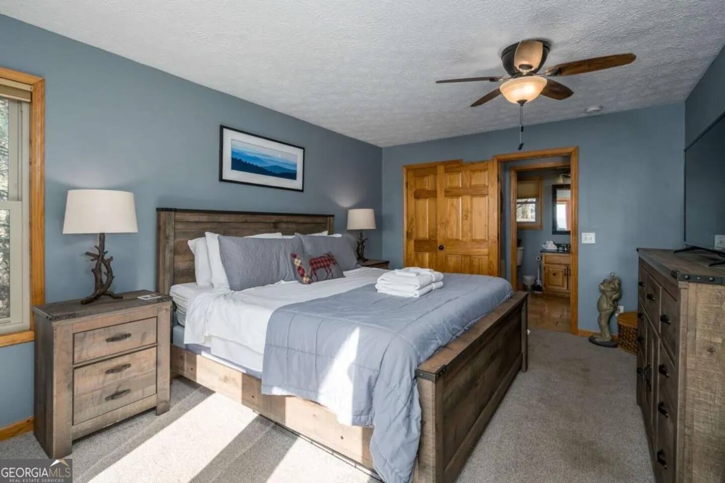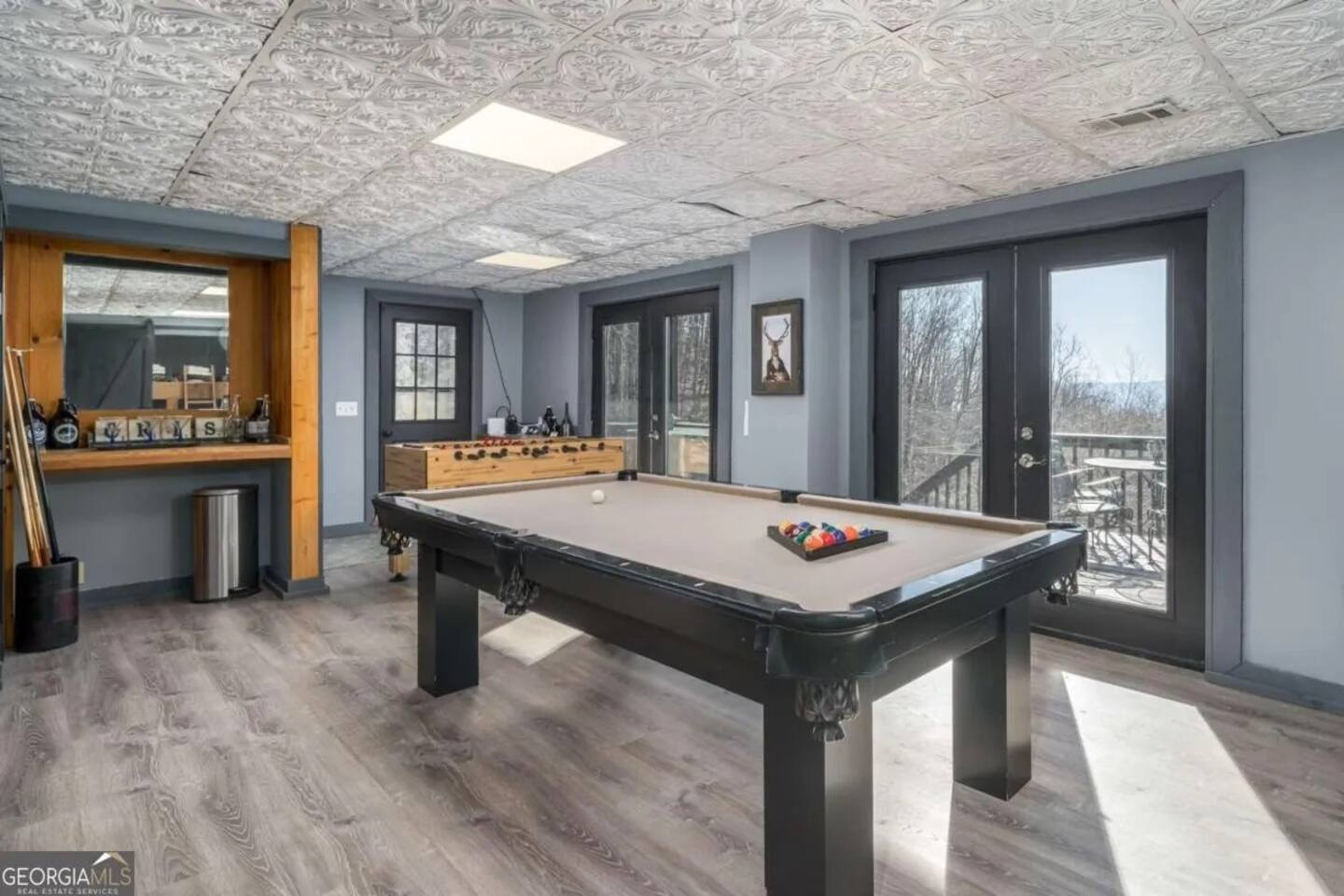 **HIGHLIGHTS** EXPLORE NEARBY - All paved roads to access the cabin, including a paved driveway - Located in a gated community with resort amenities: Olympic sized swimming pool, tennis courts, basketball court, kids playground, waterfall, hiking trails, lakes (fishing-friendly!) and a fully-fenced dog park! - 15 mins → downtown Ellijay - 14 mins → downtown East Ellijay - 26 mins → downtown Blue Ridge WELCOMING ENTRY - Detailed, step by step check-in directions - Parking for 5 cars - Smart lock for convenient & secure access - Covered and well-lit front porch: 3 rocking chairs and ceiling fan - Custom guidebook with local recommendations ENSUITE TOP LEVEL - Primary bedroom suite 1: King sized bed, 45" smart TV, ceiling fan, attached full bathroom, & double patio doors onto a private balcony with seating - Primary bathroom ensuite 1 with walk-in shower with shower wand - Lofted office space with: a computer desk, desktop monitor, keyboard, ergonomic chair, and rocking chair OPEN CONCEPT MAIN LEVEL - Primary bedroom suite 2: King sized bed, 45" smart TV, ceiling fan, attached full bathroom *ideal for those wanting to limit stair usage - Primary bathroom ensuite 2 with tub/shower combo with shower wand - Living room: 55" Smart TV, leather couches, & gas fireplace - Dining room with table for 6 - Eat-in Kitchen with cooking and dining essentials, including a dishwasher, ice-maker, gas stove, & dining peninsula with seating for 4 - Full sized laundry - Main deck and fully-fenced yard access (with outdoor living and dining) ENTERTAINING LOWER LEVEL - Bedroom 3: Double bunk beds with 4 twin beds - Bathroom 3 with walk-in shower and shower wand - Second living room: 65" smart TV and XXXX games - Game room with Foosball and billiards/pool table - Lower deck and fully-fenced yard access (with outdoor living and dining) SOAK IN THE OUTDOORS - Primary Bedroom Ensuite Deck: Private balcony with seating - Main level deck: Gas grill, outdoor sofa, 2 Adirondack chairs, & a dining table with seating for 4 (extra chairs available), with access to fully-fenced backyard - Lower deck: Hot tub, dining table with seating for 4 (extra chairs available), & custom Vespa table, with access to fully-fenced backyard - Shrouded in trees, providing privacy and beautiful surroundings - Neighborhood natural features: 4 lakes, ponds, hiking trails, and waterfall access BRING THE FAMILY - Resort amenities: Olympic sized pool, tennis courts, hiking trails, lakes, fishing, basketball court, playground, and a fully-fenced dog park! - Main floor bedroom & attached bathroom - Waterproof mattress and pillow covers on in all bedrooms - Blackout window treatments - Bathtub - Plastic dinnerware, silverware, & cups - Fully fenced yard - Full sized laundry - Leather sofas - 2 Living rooms - Streaming channels provided: Tubi, Roku Channel, Pluto, PBS - Game room: Foosball & billiards/pool table - Pet-friendly - Fully-fenced decks and yard RESORT NEIGHBORHOOD AMENITIES - Private, gated community - Olympic-sized swimming pool - Tennis courts - Basketball court - 4 Lakes (fishing permitted) and small creeks - Hiking trails, one leads to a waterfall - Kids playground - Fully-fenced dog park ADDED FOR COMFORT - Smart home features: smart locks, electronics, and high-speed WiFi - Extra pillows and linens - A Meta-CapitalLLC listing: Superhosts, so you can be confident in a pleasant experience STR License: 004232