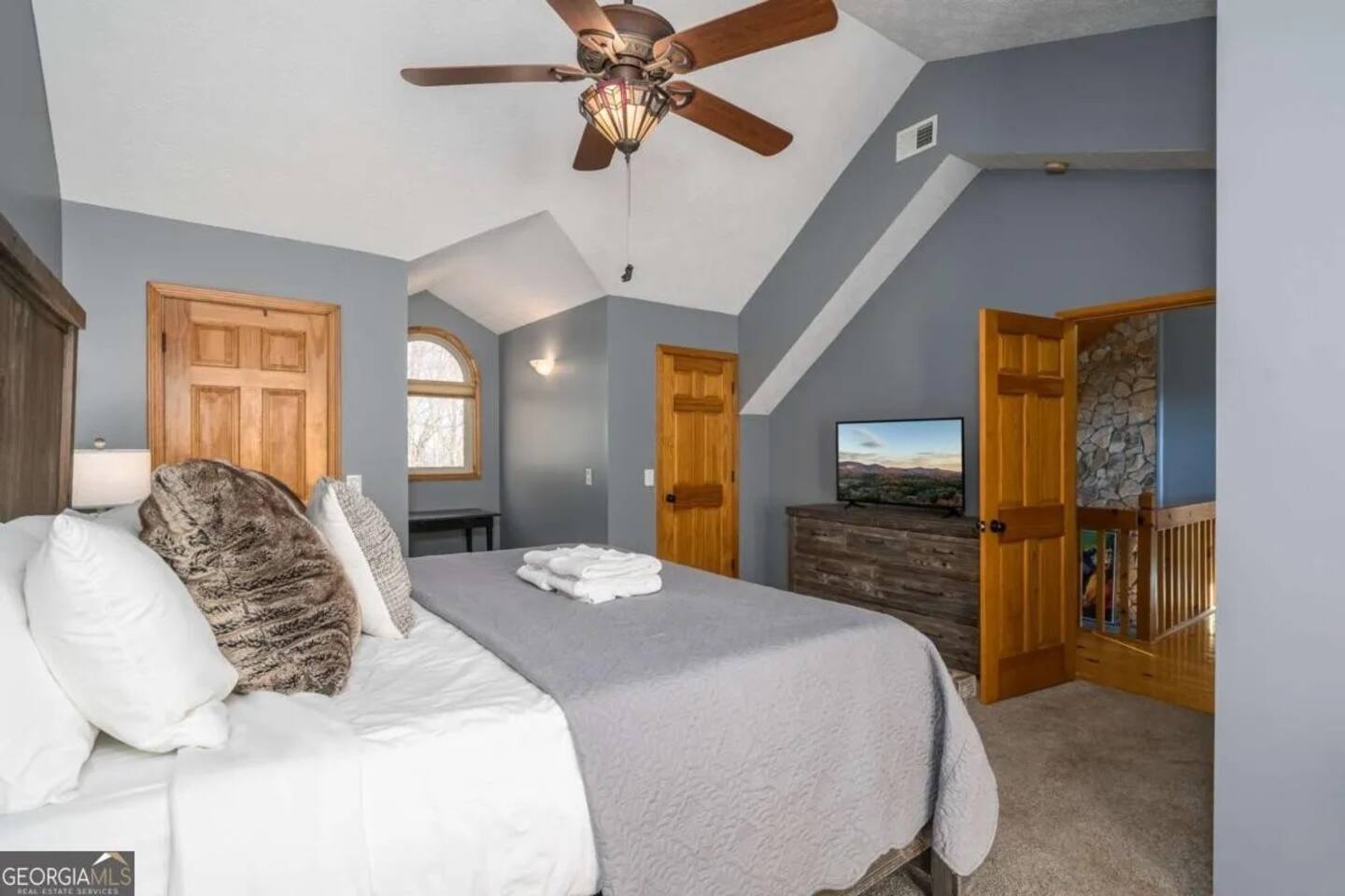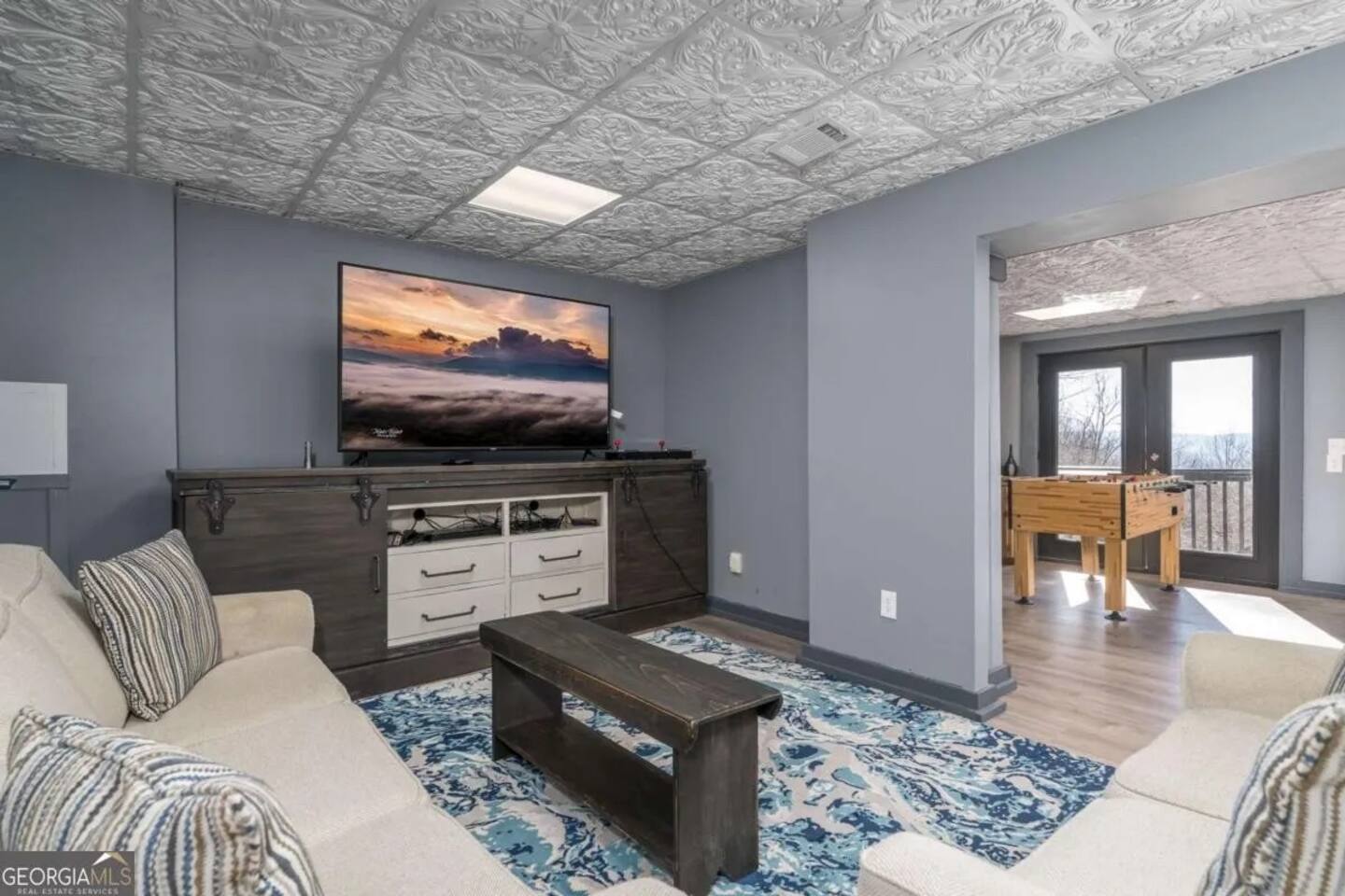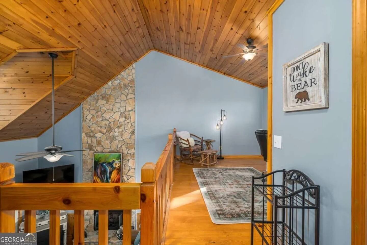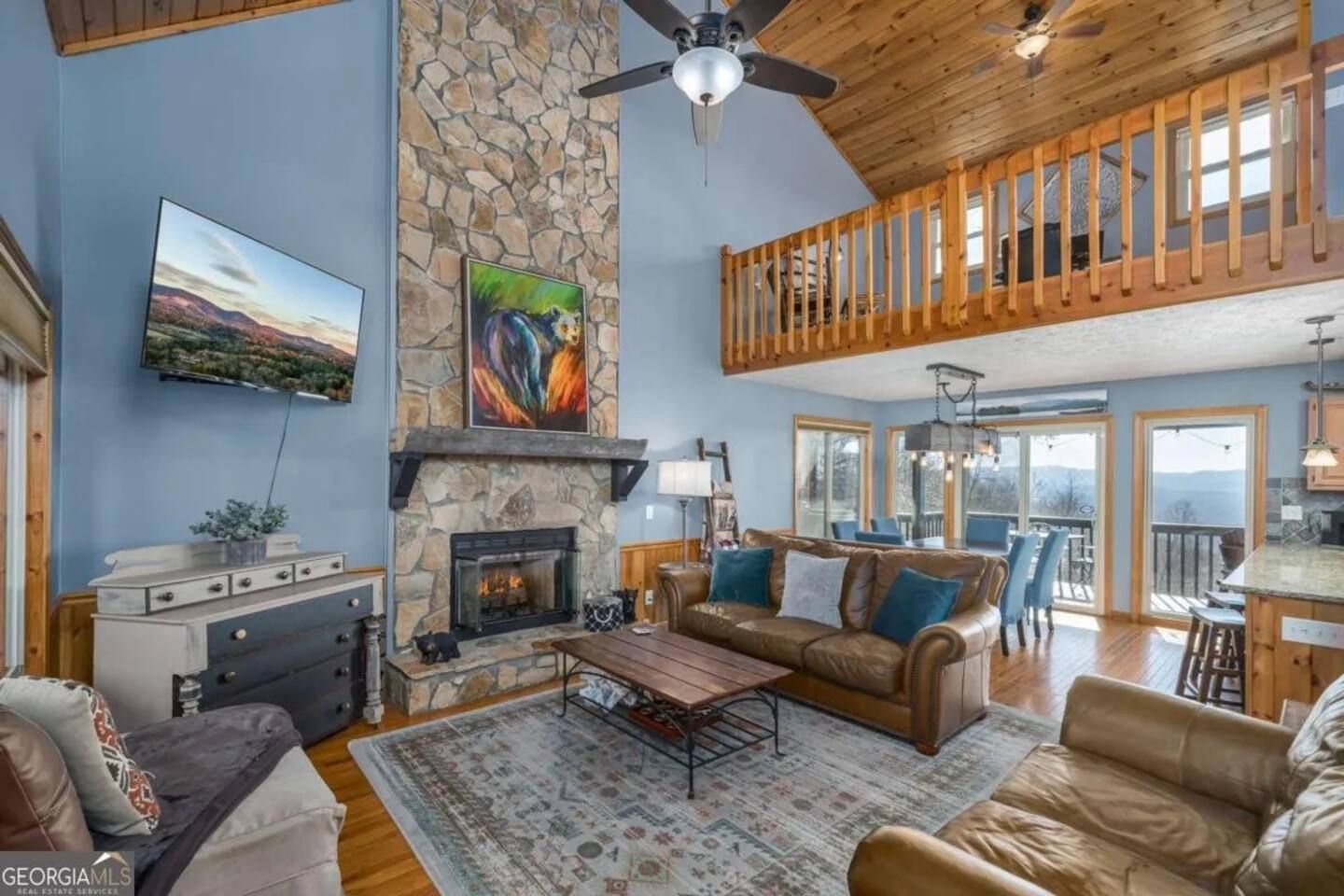 Welcome to Serenity Ridge, a 3 story cabin perched atop Walnut Mountain's private, resort community. Walnut Mountain is an outdoor enthusiast’s paradise with: hiking trails (one to a waterfall), 4 lakes (with fishing), tennis courts, Olympic size swimming pool, basketball court, tennis courts, kids playground, and a fully-fenced dog park. With 2 living rooms, a game room with billiards and foosball, and 4 separate decks, this cabin has ample space for families -but the VIEW may be the best part!
