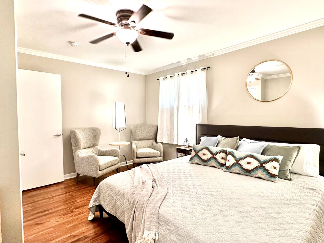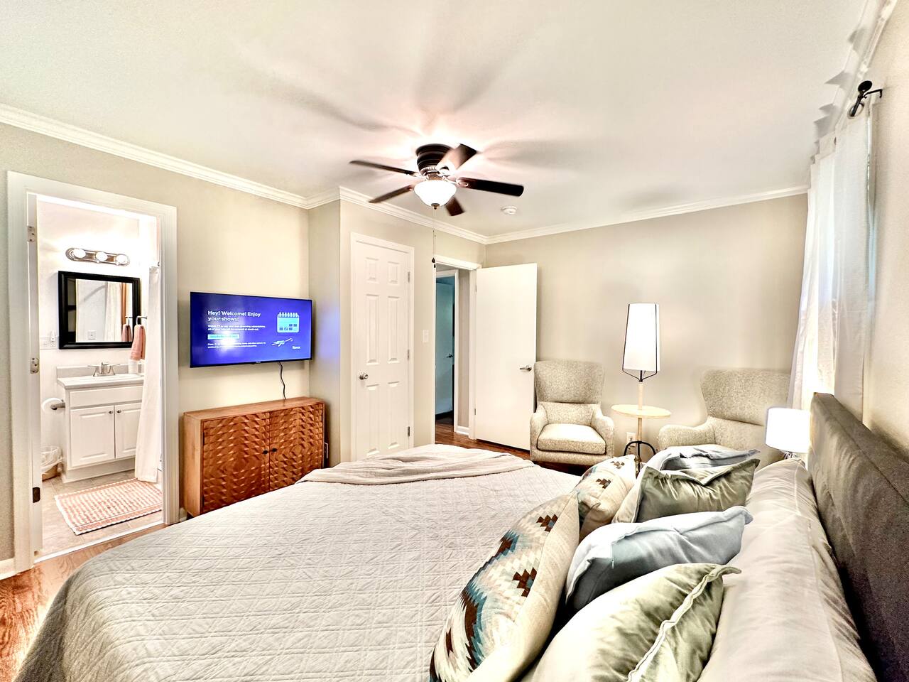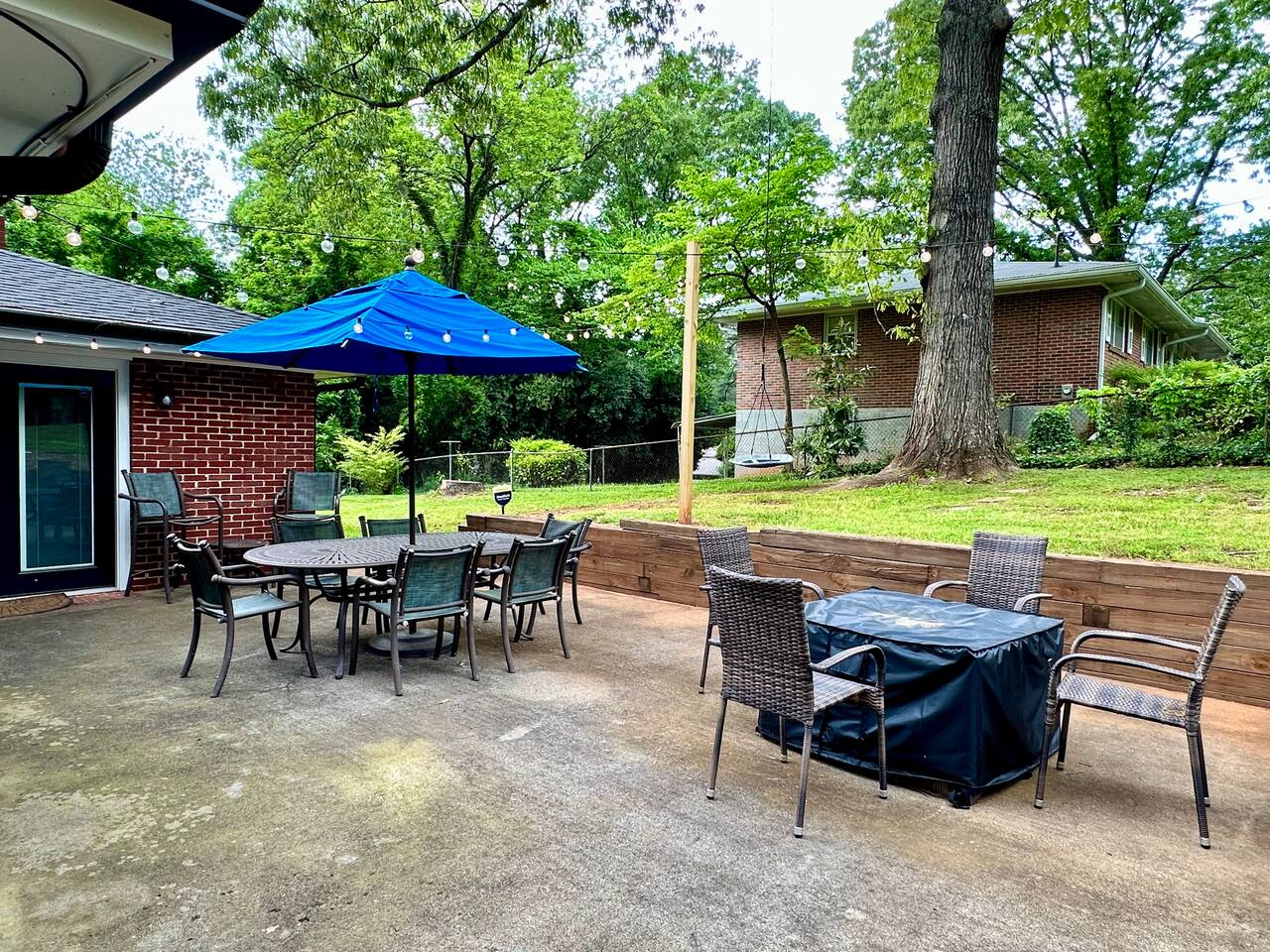 **HIGHLIGHTS** CONVENIENT LOCATION - 6 mins → downtown Stone Mountain, with locally owned shops, restaurants, breweries, book stores, coffee shops, & more - 8 mins → Stone Mountain Park - 25 mins → downtown Atlanta - 30 mins → ATL International Airport - Located in a quiet, residential neighborhood WELCOMING ENTRY - Lighted front porch entry - Detailed, step by step check-in directions - Smart lock access for ease of access - Alarm system available for additional security - Carport parking, plus additional driveway space available - Guidebook with local recommendations provided RELAXING BEDROOMS/BATHROOMS (no stairs required) - Primary bedroom suite: king bed, 40” smart tv, seating area, attached full bathroom with walk-in shower - Primary bathroom ensuite: walk-in shower - Bedroom 2: queen bed, 40” smart tv, hanging egg chair - Bedroom 3: (2) twin beds, 40” smart tv, side chair - Bathroom 2: tub/shower combo, full-sized laundry 2 ENTERTAINING LIVING ROOMS - Living room 1: hypoallergenic, leather-like sofa and 2 chairs, 58” smart tv - Living room 2: hypoallergenic, leather-like sofa, 55” smart tv, office desk with chair, French doors onto back patio STOCKED KITCHEN/DINING - Cooking and dining essentials, including children’s dinnerware - Major appliances plus: microwave, K-cup Keurig coffee maker, & drip coffee maker - Access to carport - Dining table with seating for 4 SOAK IN THE OUTDOORS - Outdoor dining table with seating for 6 - Umbrella for shade - Sprawling backyard - Hanging tree swing - Gas fire pit with seating for 4 - Bistro set for 2 under covered patio - Italian string lights for ambiance BRING THE FAMILY - Single story home, no steps required - High chair - Pack and play travel crib - Kid-friendly dinnerware - Large corner-lot yard - Tree swing - Walk-in shower in master bathroom - Bathtub in Bathroom 2 - 2 Living rooms - TVs in all bedrooms and both living rooms - Office desk with ergonomic chair - Full sized laundry - Quiet, suburban street IDEAL FOR TRAVELING PROFESSIONALS - Dedicated office desk and ergonomic chair (in a room with a door, Living Room 2) - Iron & ironing board - Highspeed WiFi ADDED FOR COMFORT - Extra linens and pillows - Smart home features: smart locks, alarm system, electronics, and high-speed WiFi - Carport parking - Kid-friendly amenities - Mobility-conscious design - Pet-friendly amenities - A Meta-CapitalLLC listing: Superhosts, so you can be confident in a pleasant experience