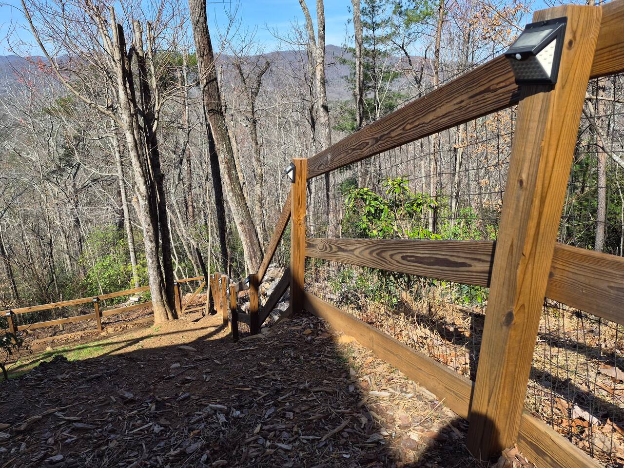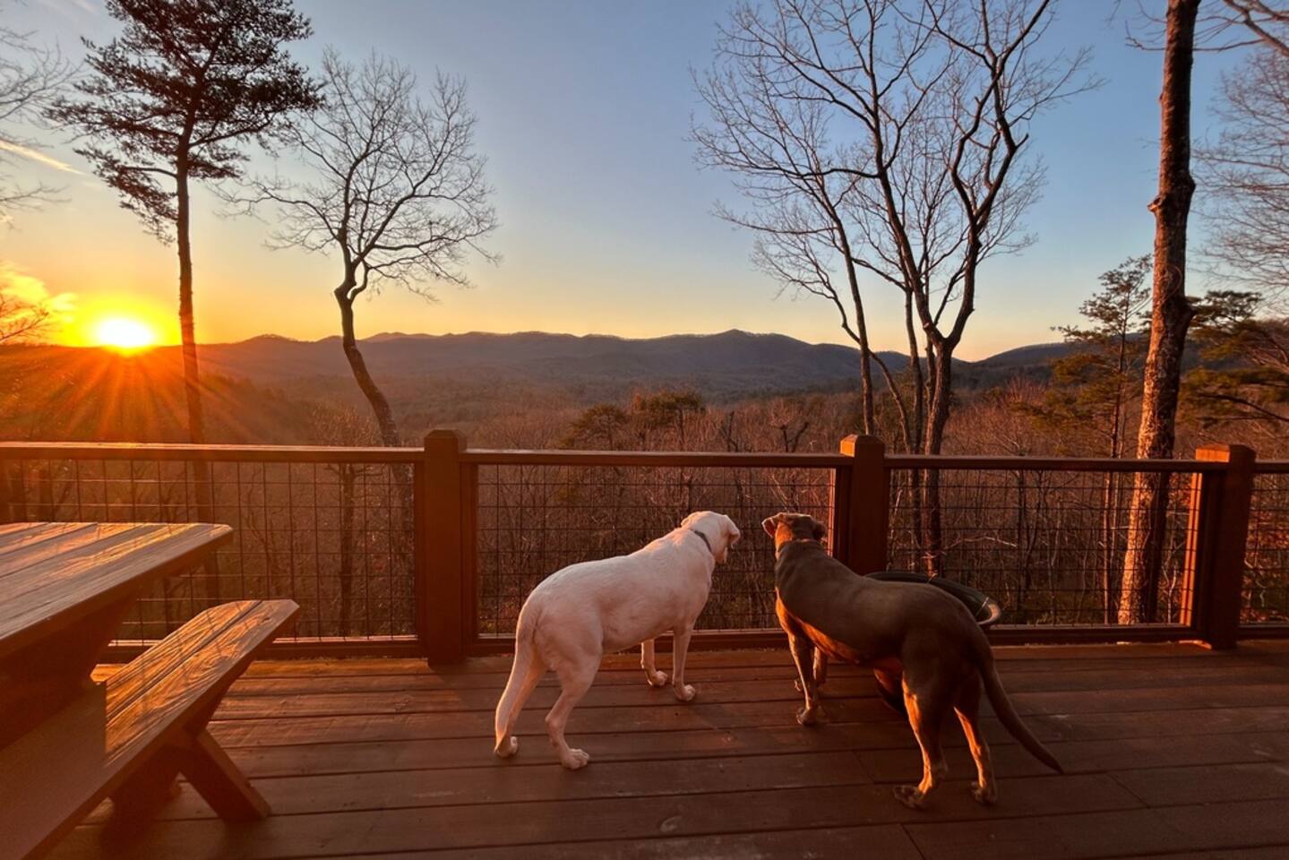 Shiny Apple Cabins - SUM FUN **HIGHLIGHTS** Shiny Apple Cabins: SOUGHT AFTER LOCATION - Paved roads from the interstate to the cabin (4WD not required) - Located on Cherry Log Mountain, with long range views - Unobstructed sunset views - 12 mins → Bigfoot Museum and Pinball Museum - 16 mins → Bear Claw Vineyards & Winery - 16 mins → downtown Blue Ridge - 19 mins → Mercier Orchards - 17 mins → Blue Ridge Scenic Railway - 20 mins → Blue Ridge Private Dog Park (inquire about booking) - 22 mins → downtown Ellijay - 27 mins → Lake Blue Ridge - Day of arrival grocery pickup and cabin stocking (message us for details) Shiny Apple Cabins: WELCOMING ENTRY - Paved roads available all the way to the cabin - Lighted pathway to the front door - Covered and lighted entryway - Smart lock for convenient and secure access - Alarm system available for added security COZY MAIN FLOOR (no stairs required) - Bedroom 1: Custom walnut furniture, king bed, nightstands, blackout cellular blinds, pack-n-play with changing pad, 32” Smart TV - Bathroom 1: Tub/shower combo, shaving/makeup mirror, suction cup grab bar in shower - Bedroom 2: Custom walnut furniture, king bed, nightstands, blackout cellular blinds, 32” Smart TV - Kitchen: Stocked with cooking and dining essentials, island for prepping, and appliances, including a dishwasher, microwave, crockpot, blender, ice maker, and toaster - Dining: Dining table with seating for 6, coffee and tea bar (drip coffee maker, Keurig, electric kettle, and coffee bean grinder), propane heater, dining mat and bowls for pups, & 6x6 picture window overlooking the Blue Ridge Mountains - Living: Microfiber sofa with pet cover, leather dual recliner loveseat, leather recliner chair, wood burning fireplace with stone surround (wood provided), 50” Smart TV ENTERTAINING LOWER LEVEL / GAME ROOM - Games: Foosball, dart board (kid safe), Giant Connect Four, table top shuffleboard and curling 2-in-1 game board, books for adults, teens and children, puzzles, playing cards, board games - 43” Smart TV - Sleeping area in game room: 2 Twin beds, 1 Full-sized futon, blackout cellular blinds - Bathroom 2: Tub/shower combo, hand-held shower head, step-stool for kids - Laundry: Full-sized washer and dryer - Folding desk with chair Shiny Apple Cabins: SOAK IN THE OUTDOORS - The Benton MacKaye hiking trail runs through the neighborhood, marked with white diamond blazes; great for people and pups! - All spaces with breathtaking Blue Ridge Mountain views - Covered entry porch: Keypad entry, porch swing, rocking chairs, outdoor ceiling fans, firewood rack - Deck 1: Picnic table, additional seating for lounging and dining - Deck 2: Covered deck secured in fenced yard, seating for lounging and dining, hammock, dog hammock, water hydrant, Hot Tub with seating for 4 - Fire pit: Adirondack seating for 6, fully-fenced yard, water hydrant - Driveway: Gravel, parking for 4 cars, charcoal grill - Driving: all paved roads - Unobstructed sunset mountain views Shiny Apple Cabins: IDEAL FOR FAMILIES - All bedrooms have smart TVs with cable and streaming channels - Graco 3-way pack n' play / travel crib - Folding high chair - Bathroom step stool - 2 Bathtubs - Handheld shower wand - Kid-friendly dinnerware - 2 Twin beds - Waterproof mattress and pillow covers in all bedrooms - Blackout cellular blinds - Game and playroom - Games, books, puzzles, board and card games, for children - Postcards - color in local wildlife! (crayons provided) - Full-sized laundry - Sofa cover - Fireplace guard - Gated deck - Fully fenced yard - Hardwood floors Shiny Apple Cabins: DOG DEVOTED - No pet fee - 2 enclosed areas for pups (i) gated deck, and (ii) fully-fenced yard (All of the fencing is reinforced with welded wire mesh, including under the stairs. But of course, be mindful if your pup is a little escape artist) - Up to 3 dogs permitted, no breed or size restrictions - Extra sanitation and cleaning provided - Machine washable couch cover and rug - Dog hammock - 2 large (36”) crates with mats/blankets - Dog bed with washable cover - Dog towels & blankets - 2 outdoor water hydrants for drinking or bathing dogs - Dog bowls, dining mats, leash hooks, poop bags, and more - First Aid kit for dogs - Calming care tools and resources for dogs - Designated dog flat sheets for beds - Exterior motion sensor lights - Bag of homemade holistic treats from Lollie Made with every stay - List of nearby dog-friendly activities, shopping, dining - Digital dog frame: *Send us a photo of your pup having a pawtastic time at SUM FUN to be added* - Dog Rock Garden: paint your pup, add to the cabin pup collection, because your dog rocks! (rocks and paint provided :) - Dog Photography Packages (please message us for details to capture your pups' tail wagging smiles) - Poop scooping services (please message us for details) - Optional, exclusive, access to privately owned 0.84 acre fenced-in dog park, Blue Ridge Private Dog Park (20 minutes away), $75 for a stay of 3 nights or less or $169 for a stay of 4 nights or more. Private: Just you and your pups, no one else. THOUGHTFUL DESIGN Each room is themed: decorated to share local wildlife on the mountain - red fox, deer, bear, squirrels, and many varieties of birds. So whether you are outside on the decks or trails or inside cozied up or playing in the game room, enjoy wildlife sightings. *Shiny Apple Cabins is Veteran-owned* License Number: 003054
